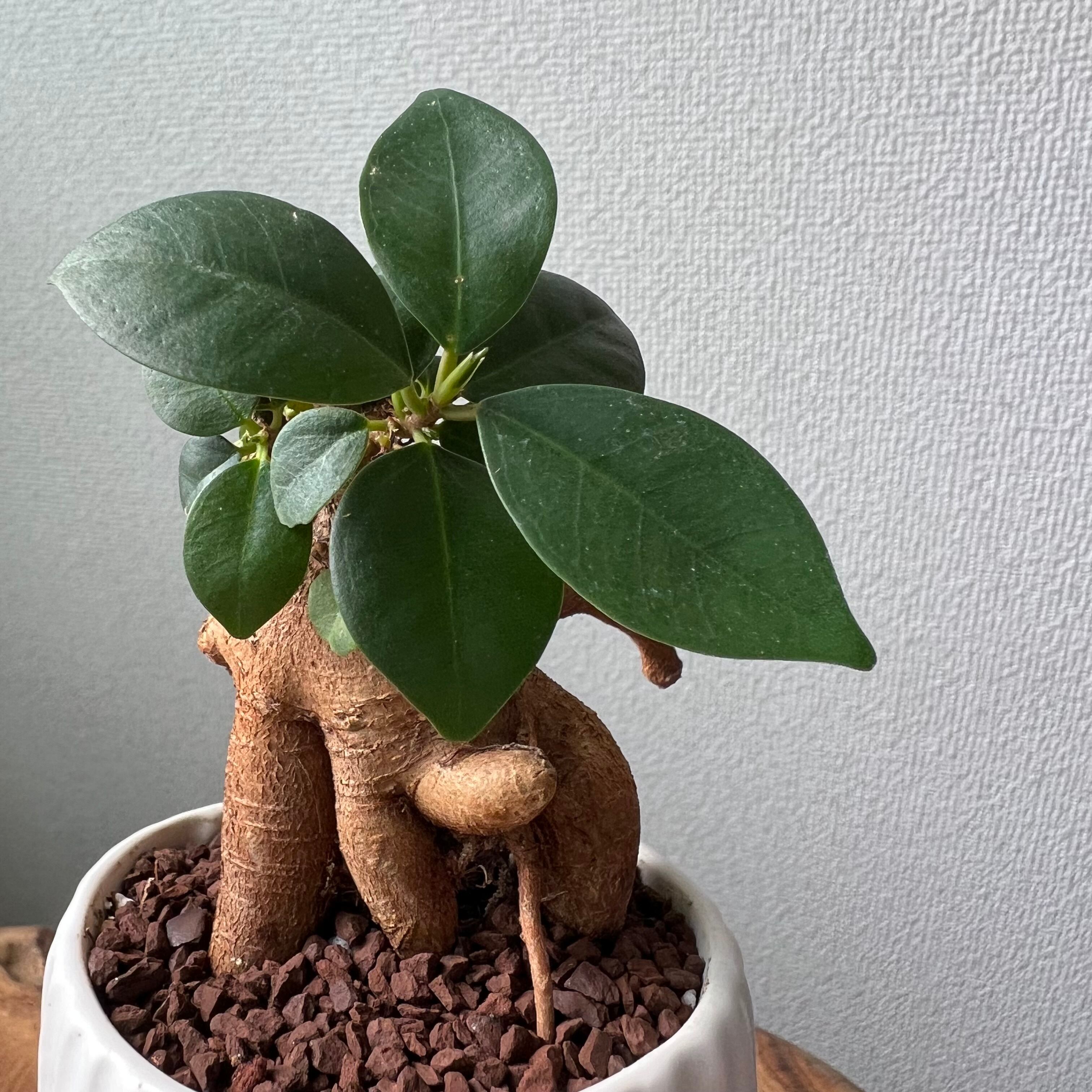耐陰性、耐乾性があり育てやすく、縁起の良い植物としてプレゼントにも大人気のガジュマルです。
